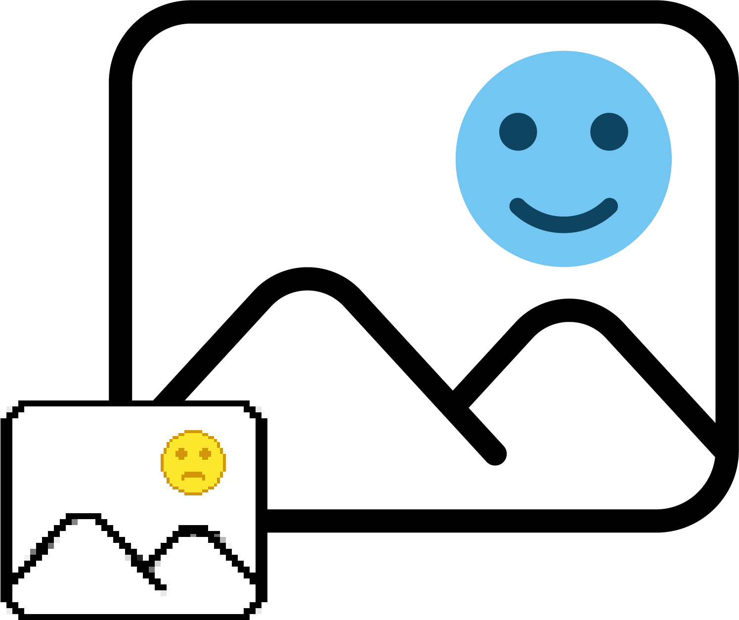 Konverter beseitigt Kompressions-Artefakte und verbessert die Pixel-Auflösung.